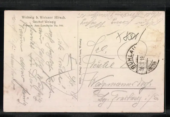 AK Weissig b. Weisser Hirsch, Gasthof Weissig in der Strassenansicht