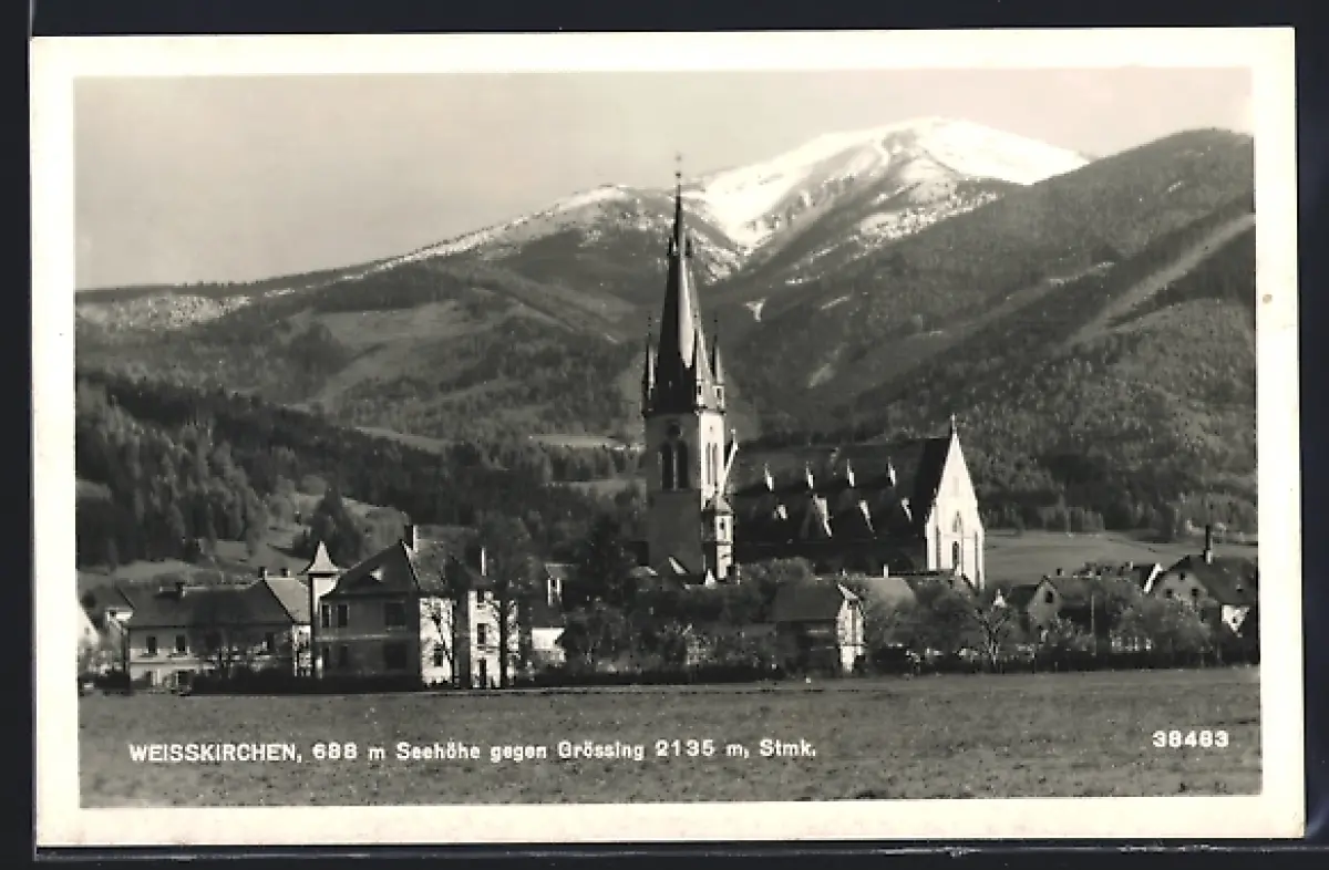 AK Weisskirchen, Ortspartie mit Kirche gegen Grössing