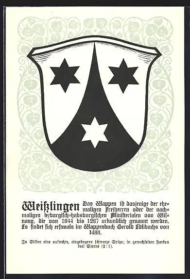 AK Weisslingen, Wappen auf Blatt-Ornamenten, Info-Text