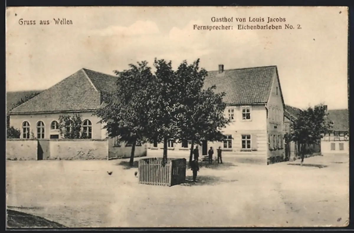 AK Wellen / Hohe Börde, Gasthof von Louis Jacobs mit Vorplatz