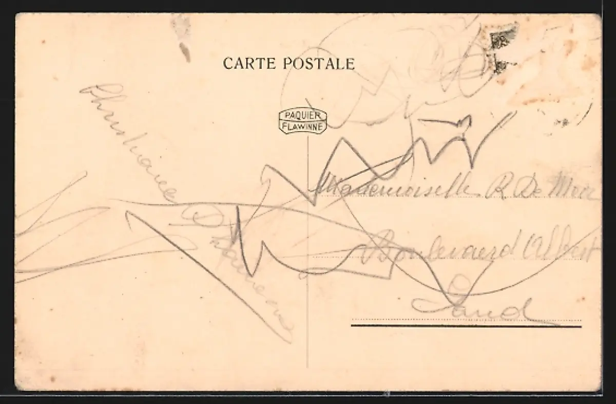 alte Ansichtskarte, gelaufen, Briefmarke entfernt, rückseitig Oberflächenschaden, rückseitig Klebe- und Papierreste, Eckknick re. unten, guter Zustand