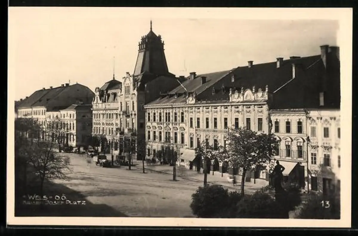 AK Wels, Kaiser-Josef-Platz mit Gasthof zum Goldenen Hirschen