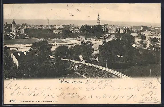 AK Wels /Ob.-Oe., Teilansicht mit Flusspartie