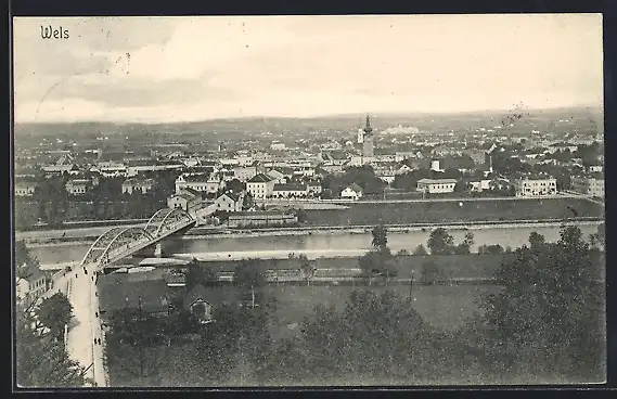 AK Wels, Totalansicht aus der Vogelschau