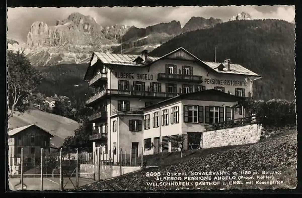 AK Welschnofen, Gasthof zum Engel mit Rosengarten