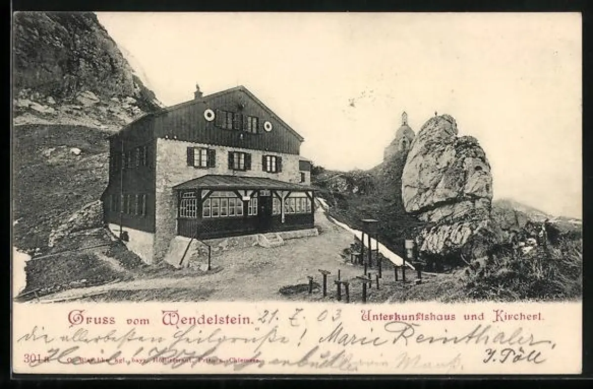 AK Wendelstein Unterkunftshaus, Partie mit Kircherl
