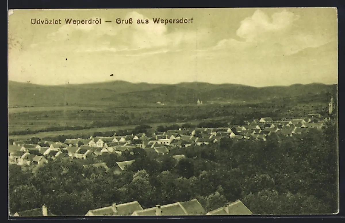 AK Weppersdorf, Totalansicht mit Fernblick aus der Vogelschau
