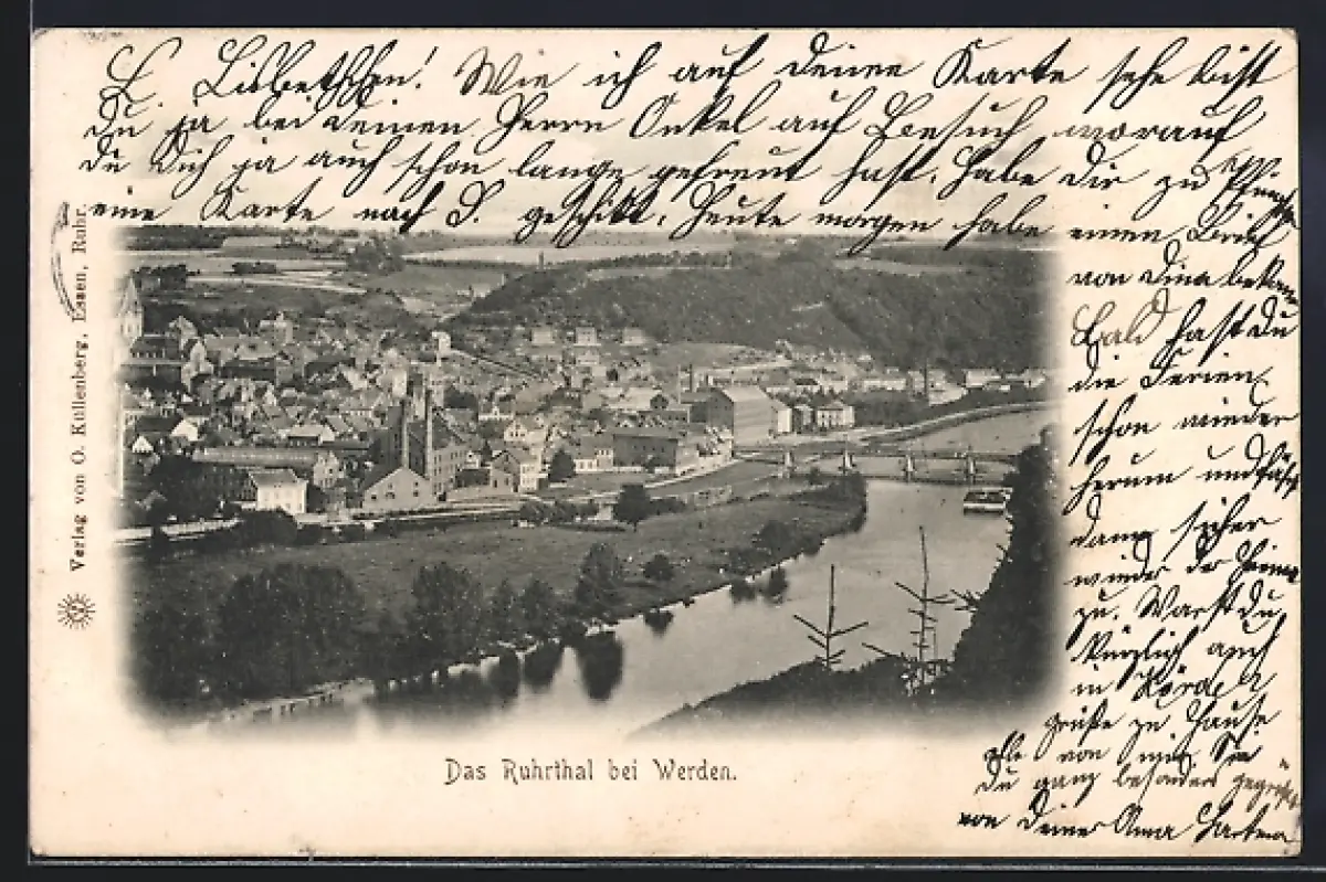 AK Werden /Ruhrtal, Ortsansicht mit Ruhrtal aus der Vogelschau