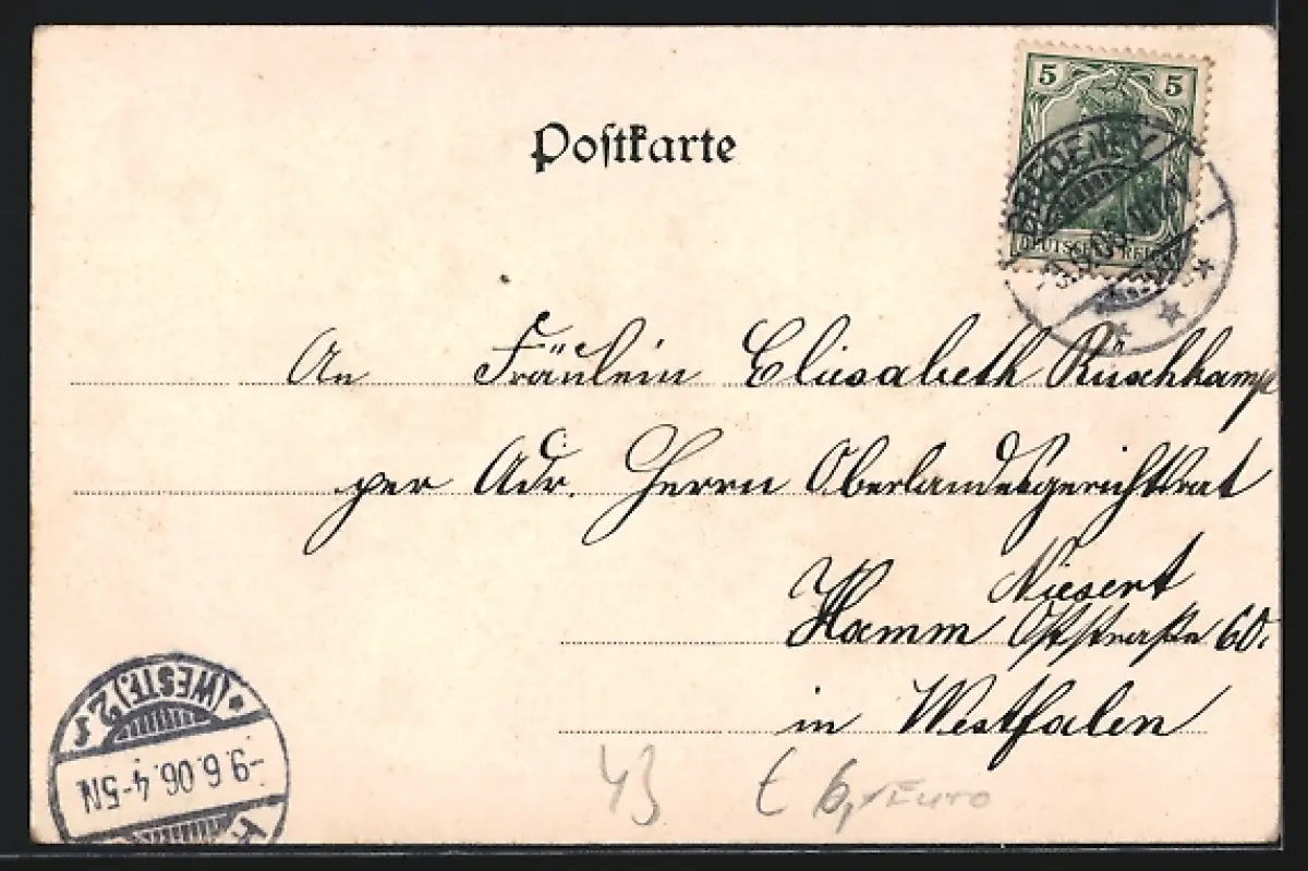 alte Ansichtskarte, gelaufen 1906, Ecken bestoßen, guter Zustand