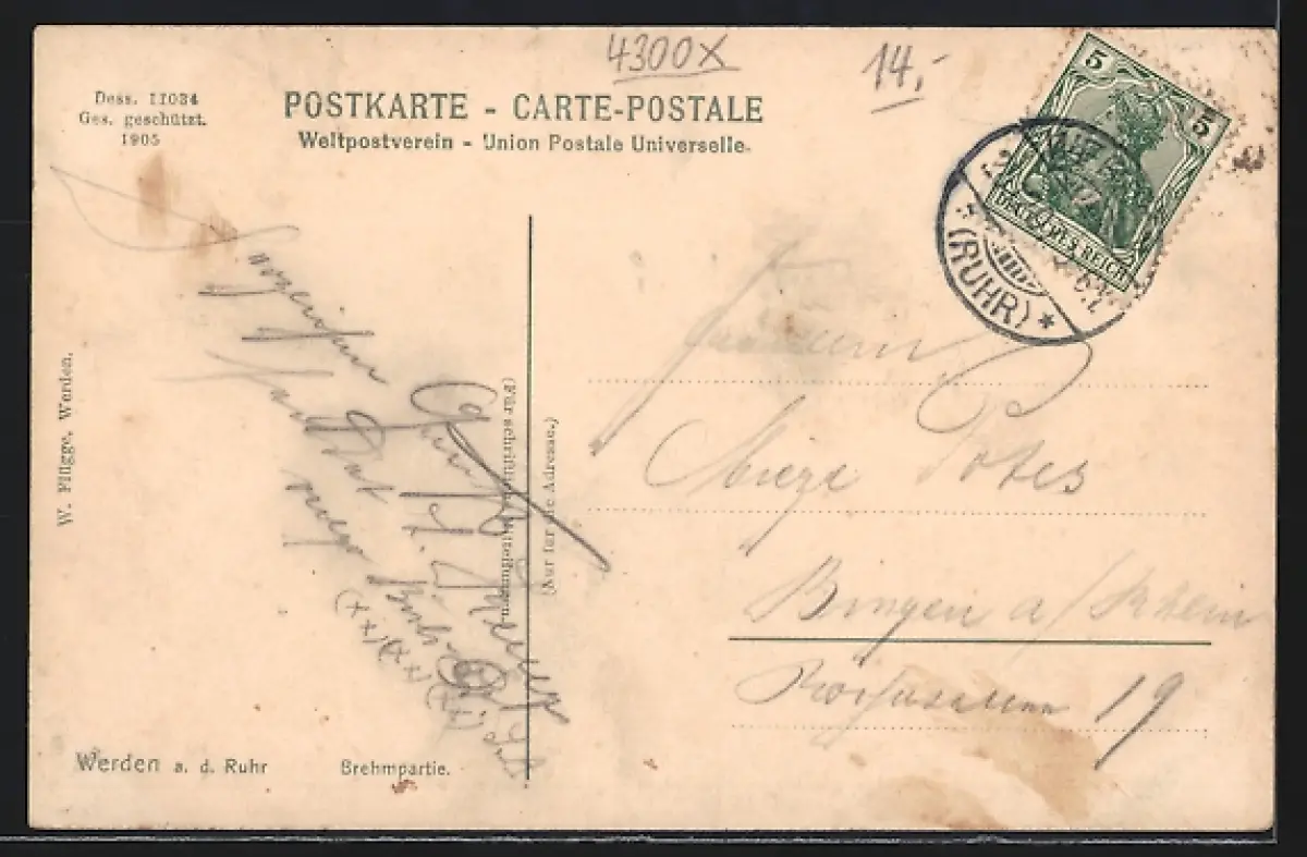 AK Werden a. d. Ruhr, Brehmpartie mit Spaziergängern