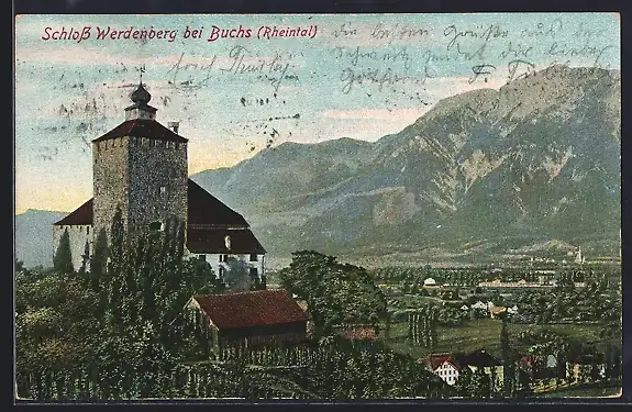 AK Werdenberg bei Buchs, Ansicht vom Schloss mit Bergpanorama