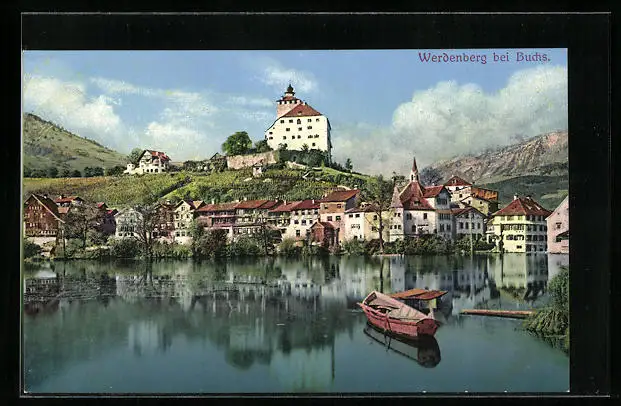 AK Werdenberg bei Buchs, Ortsansicht mit Ruderboot