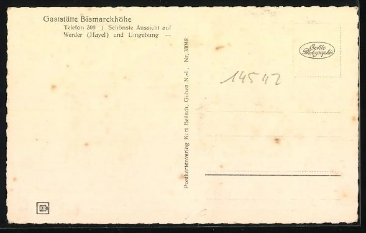 AK Werder /Havel, Blick von der Gaststätte Bismarckhöhe zur Inselstadt