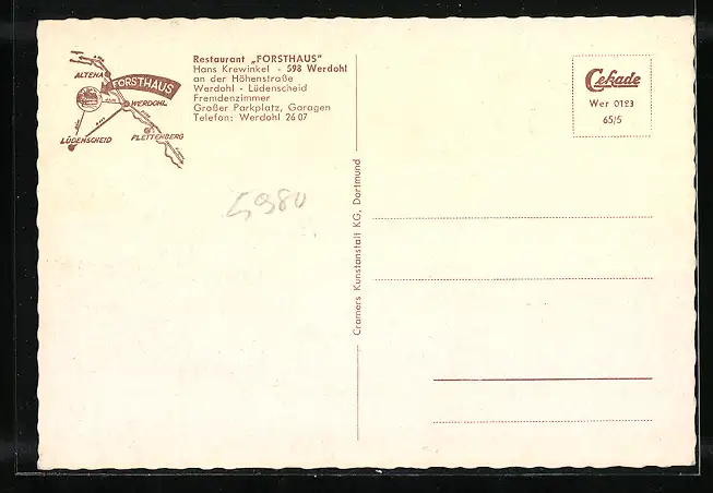 AK Werdohl, Restaurant Forsthaus, Blick a. d. Lennetal auf das Forsthaus