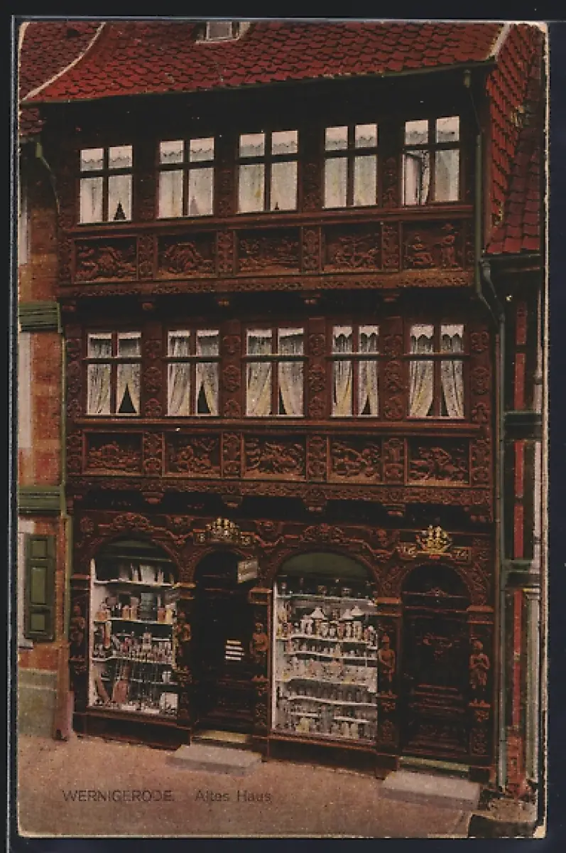 AK Wernigerode, Altes Haus mit Schaufenstern