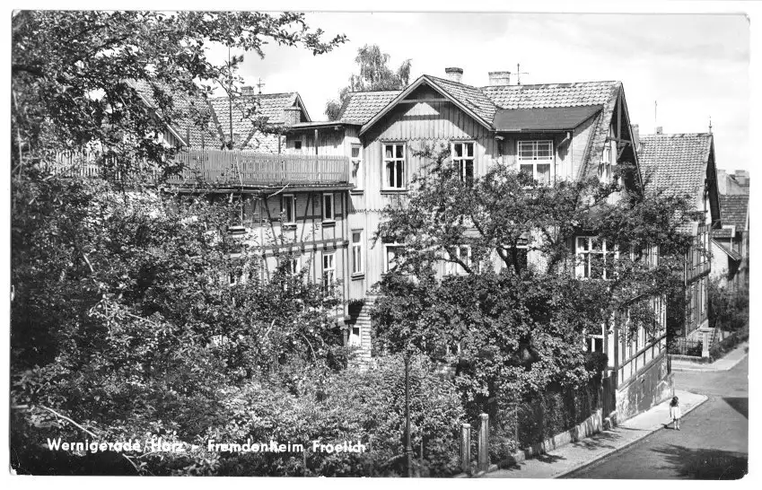 Ansichtskarte Wernigerode Harz Fremdenheim Froelich Erhaltung I-II, Beförderungsspuren postalisch gelaufen, gestempelt: Wernigerode, 3.8.... Druckvermerk: 1963 Herstellungsland: DDR Verlag: E. Riehn, Wernigerode Harz