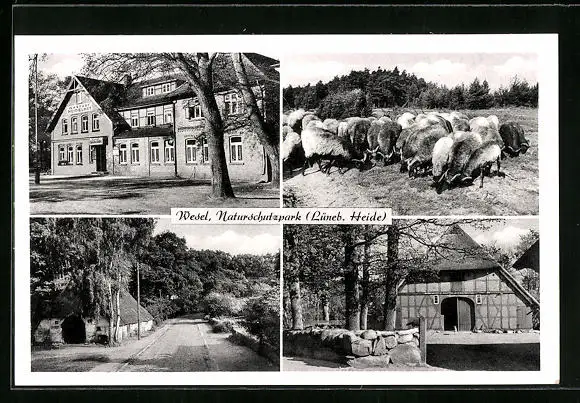 AK Wesel, Gasthof Heidelust, Gehöft in der Heide, Heidschnucken