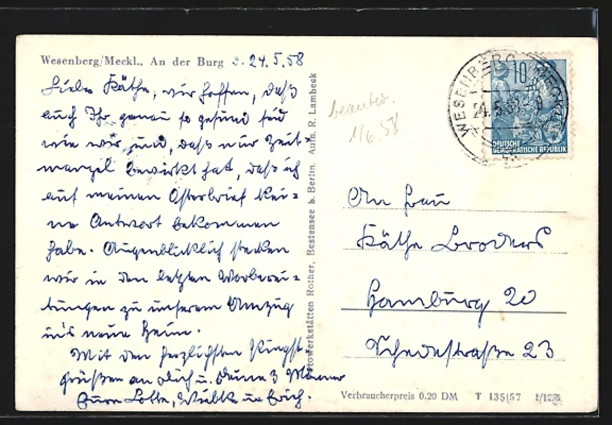 alte Ansichtskarte, gelaufen 1958, guter Zustand