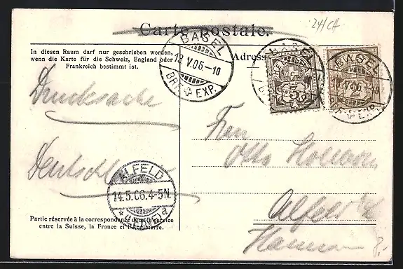 gelaufen 1906, Eckknicke li. oben u. re. unten, guter Zustand