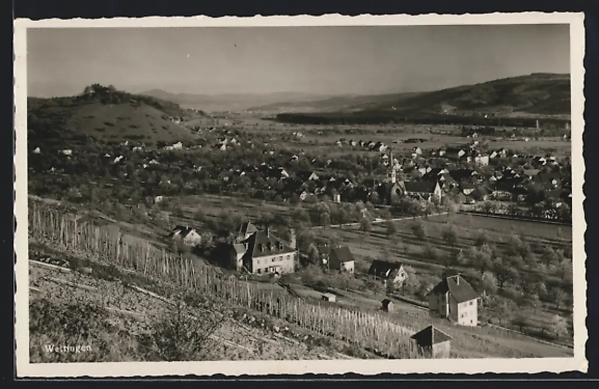 AK Wettingen, Ortsansicht von einem Weinberg aus
