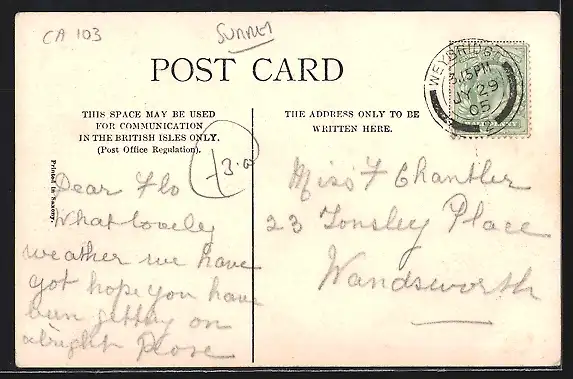 alte Ansichtskarte, gelaufen 1905, guter Zustand