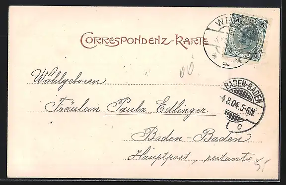 alte Ansichtskarte, gelaufen 1904, guter Zustand