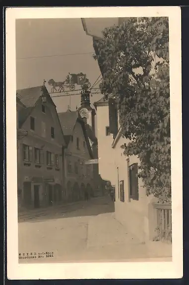 AK Weyer a. d. Enns, Ortspartie mit Gasthof und Ortseingangsschild zwischen zwei Häusern