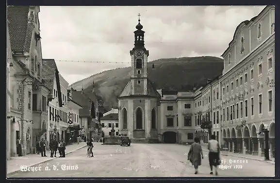 AK Weyer a. d. Enns, Strassenpartie mit Kirche