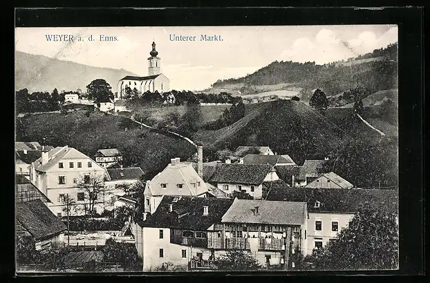 AK Weyer a. d. Enns, Unterer Markt aus der Vogelschau