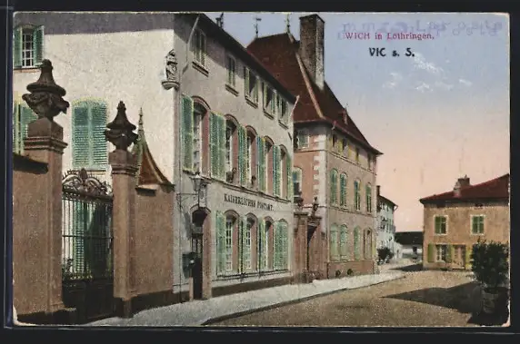 AK Wich i. Lothringen, Strassenpartie mit dem Kaiserlichen Postamt