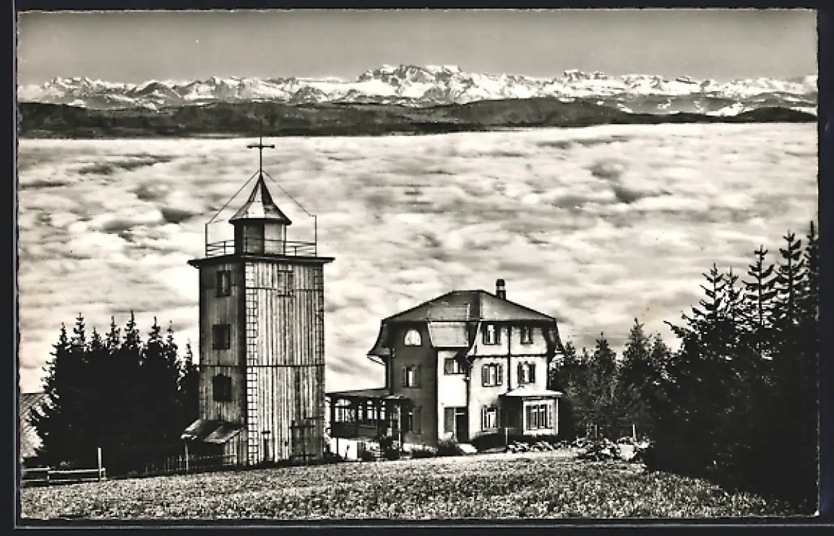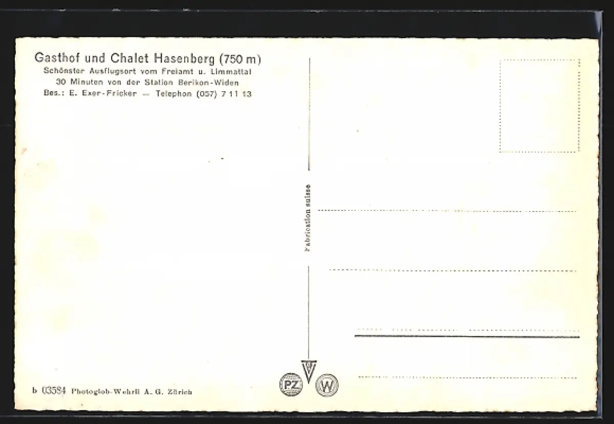 AK Widen, Hasenberg, Gasthof und Chalet Hasenberg E. Exer-Fricker mit Bergpanorama