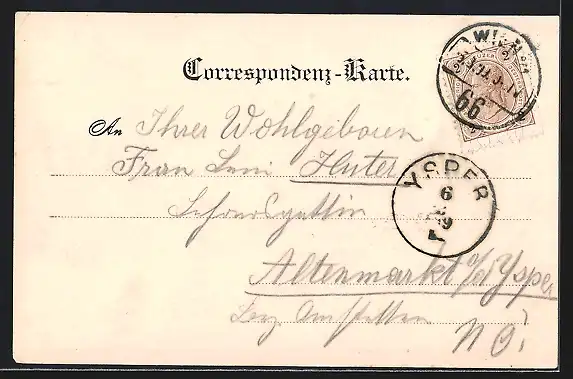 alte Ansichtskarte, gelaufen 1899, Eckknicke oben, guter Zustand