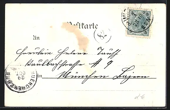 alte Ansichtskarte, gelaufen, Stempelspur, rückseitig Klebe- und Papierreste, guter Zustand