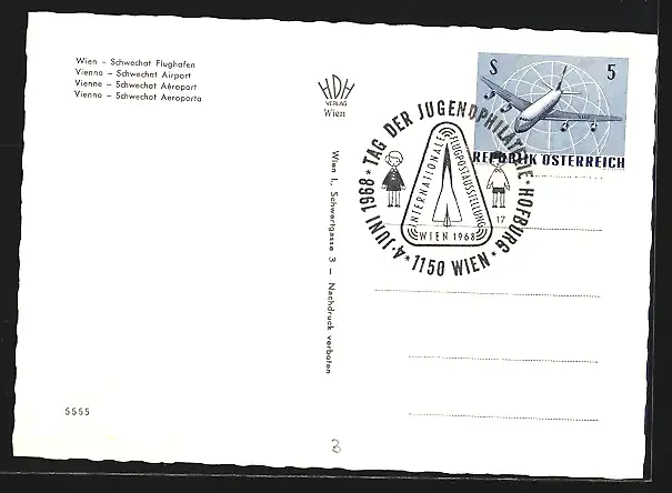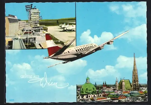 AK Wien, Flughafen Schwechat, Flugzeug, Ortsansicht