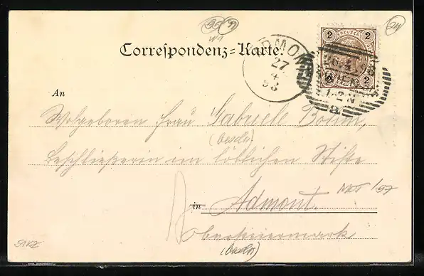 alte Ansichtskarte, gelaufen 1898, guter Zustand