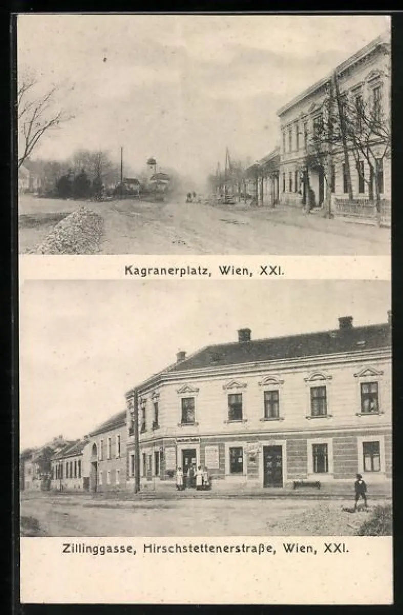 AK Wien, Gemischtwarenhandlung in der Zillinggasse, Hirschstettenerstrasse, Kagranerplatz