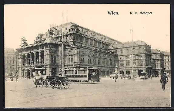 AK Wien, K. k. Hofoper mit Strassenbahn