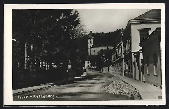 AK Wien-Kalksburg, Strassenpartie mit Kirche