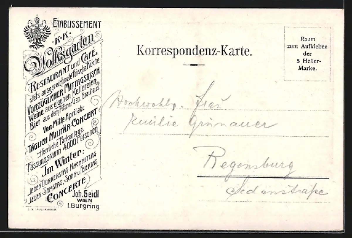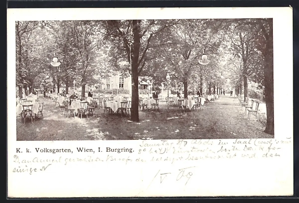AK Wien, K.k. Volksgarten, Partie mit Sommergarten, Burgring