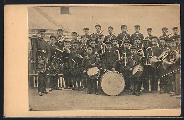 AK Wien, Knabenheim, Gruppenbild mit Instrumenten