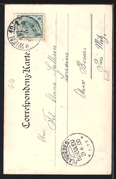 alte Ansichtskarte, gelaufen 1900, Abriebspuren Ecken li., guter Zustand