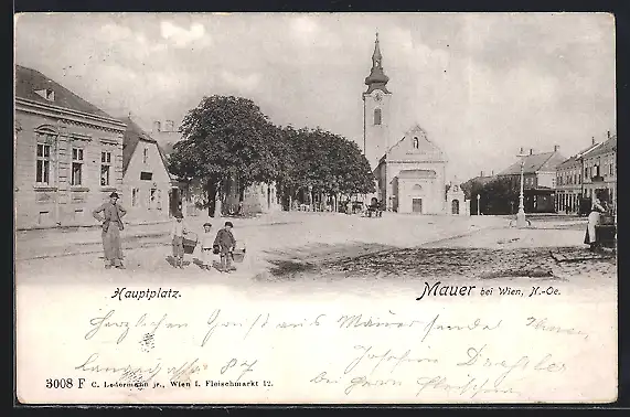AK Wien, Mauer, Hauptplatz mit Kirche