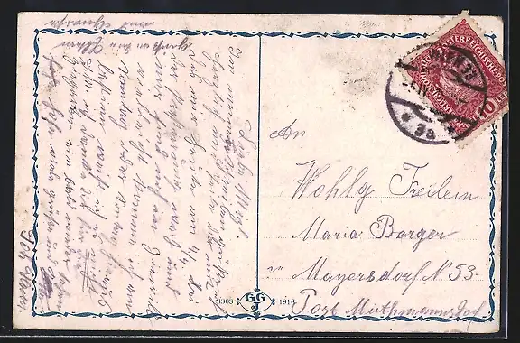 alte Ansichtskarte, gelaufen, Eckknicke re., Ecken bestoßen, guter Zustand