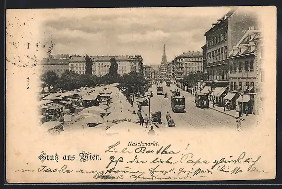 AK Wien, Naschmarkt mit Strassenbahnen