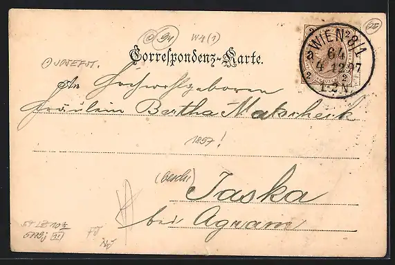 alte Ansichtskarte, gelaufen 1897, Stempelspur, guter Zustand