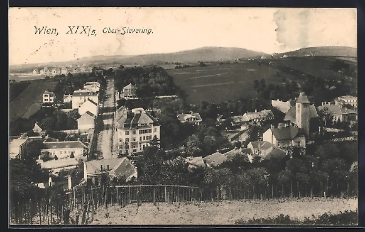 AK Wien, Ober-Sievering, Ortsansicht vom Weinberg aus