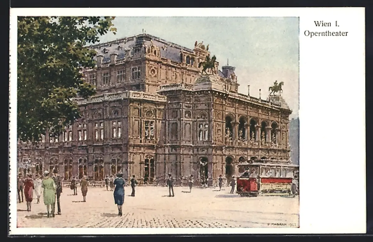 AK Wien, Operntheater mit Strassenbahn