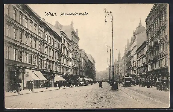 AK Wien, Partie in der Mariahilferstrasse, Strassenbahn