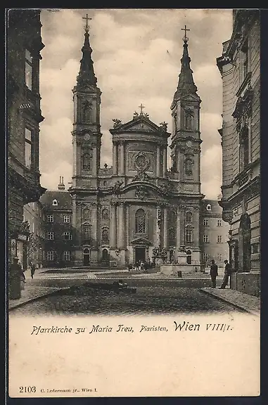 AK Wien, Pfarrkirche zu Maria Treu / Piaristen, Frontansicht