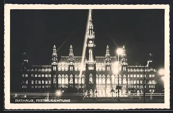 AK Wien, Rathaus in Festbeleuchtung